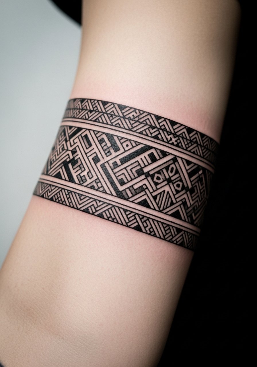 2. Geometric Blackwork Band Around Forearm