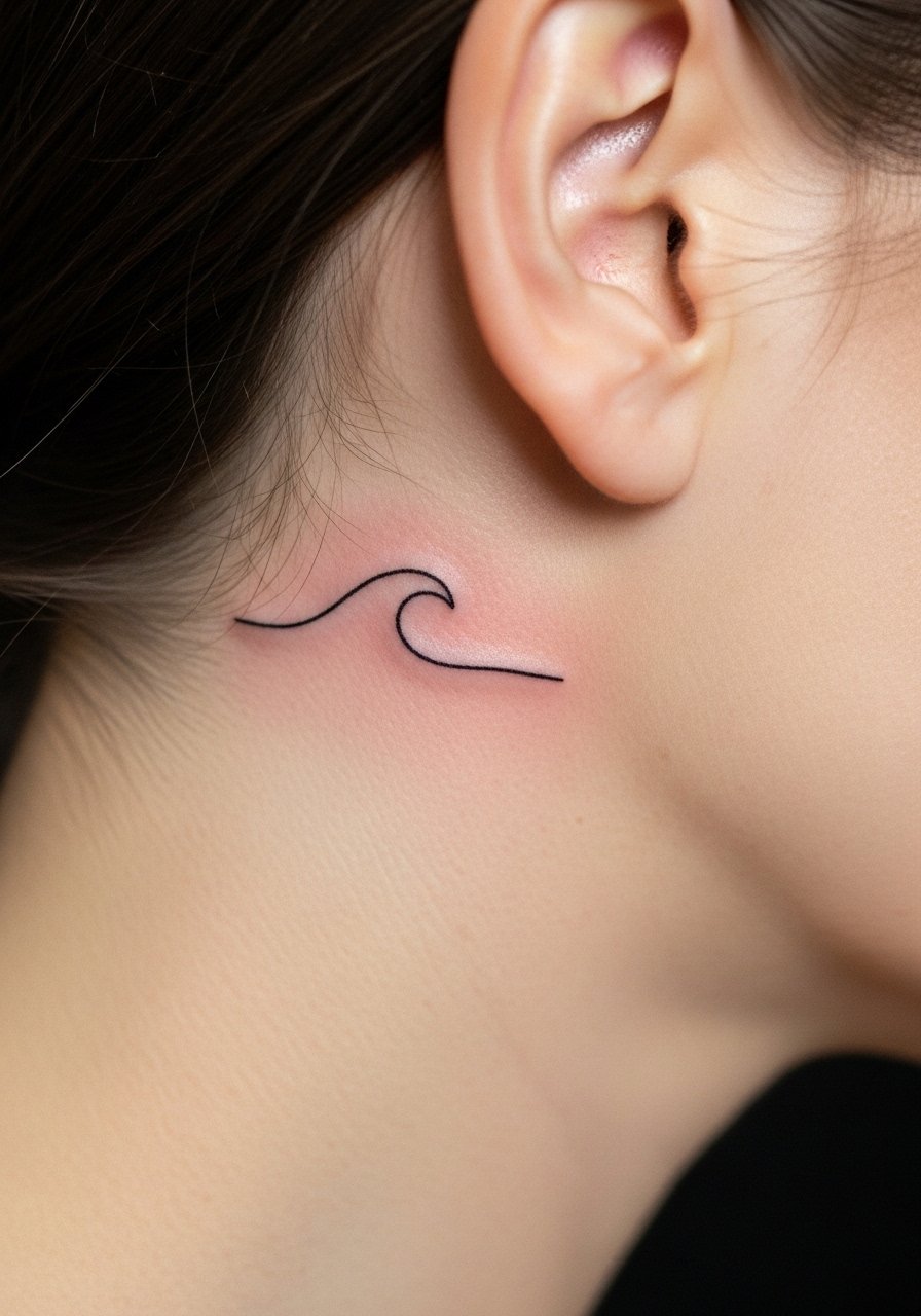 3. Minimalist Line Wave Behind Ear