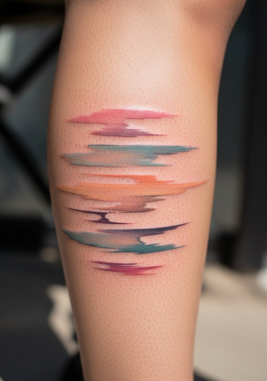 Calf skin tolerates long sessions well. Brushstroke styles read as movement and keep character as they fade. Expect colors to mellow; black anchors help keep the composition readable. Artists who work with painterly techniques and can show healed legs are good picks. Avoid too many thin translucent layers without contrast.