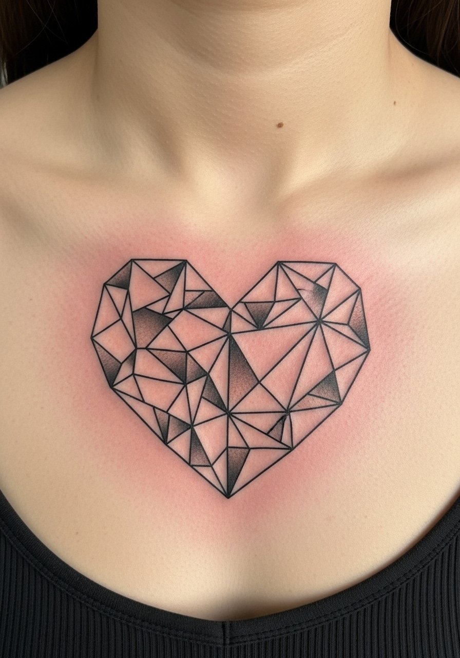 10. Geometric Fragmented Heart on Chest