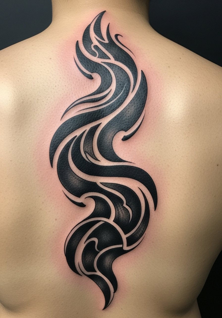 12. Blackwork Abstract Wave Down Spine