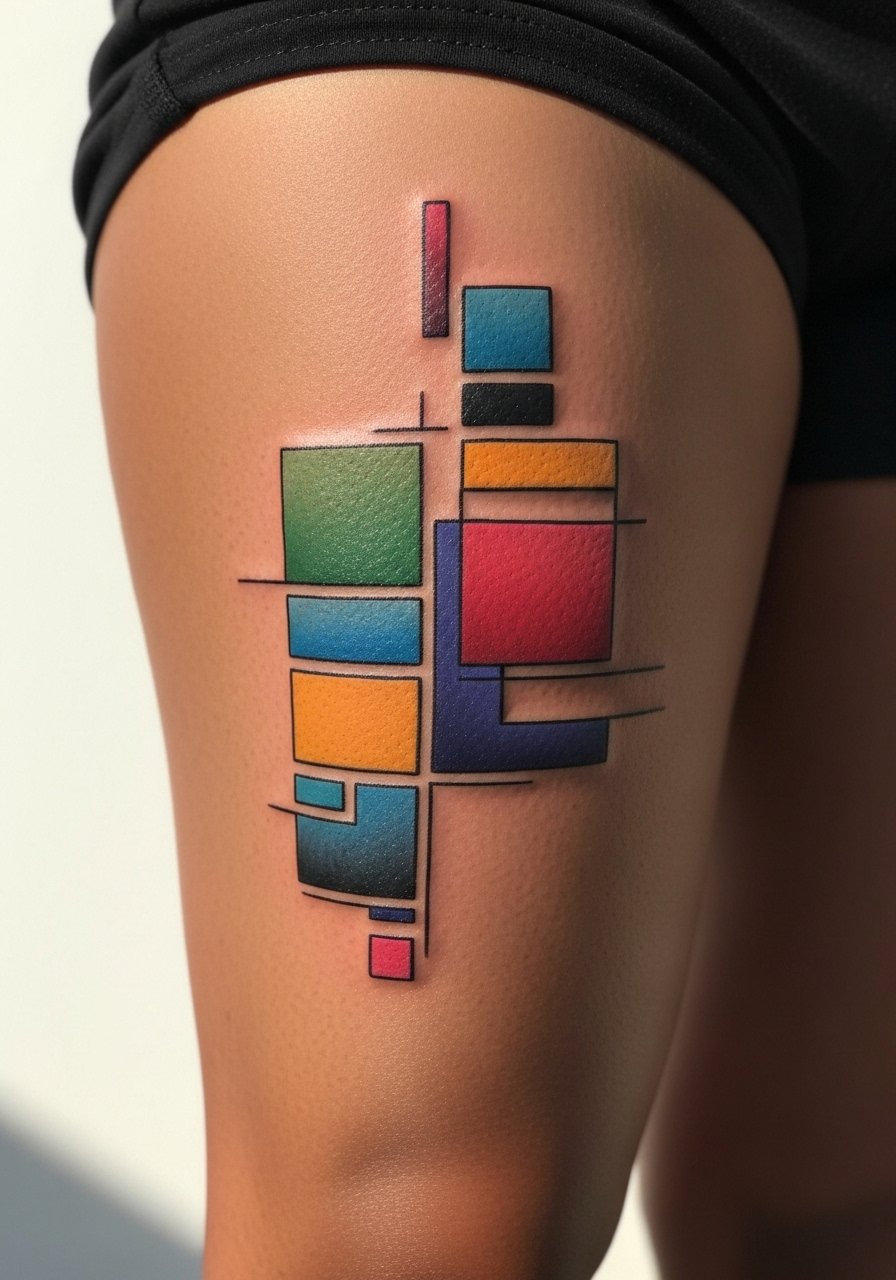 Thighs are forgiving for large color work. Color blocks can remain vibrant if saturated and well-layered. Avoid tiny gradients without contrast; they can blur into each other. Choose artists with solid color packing techniques.