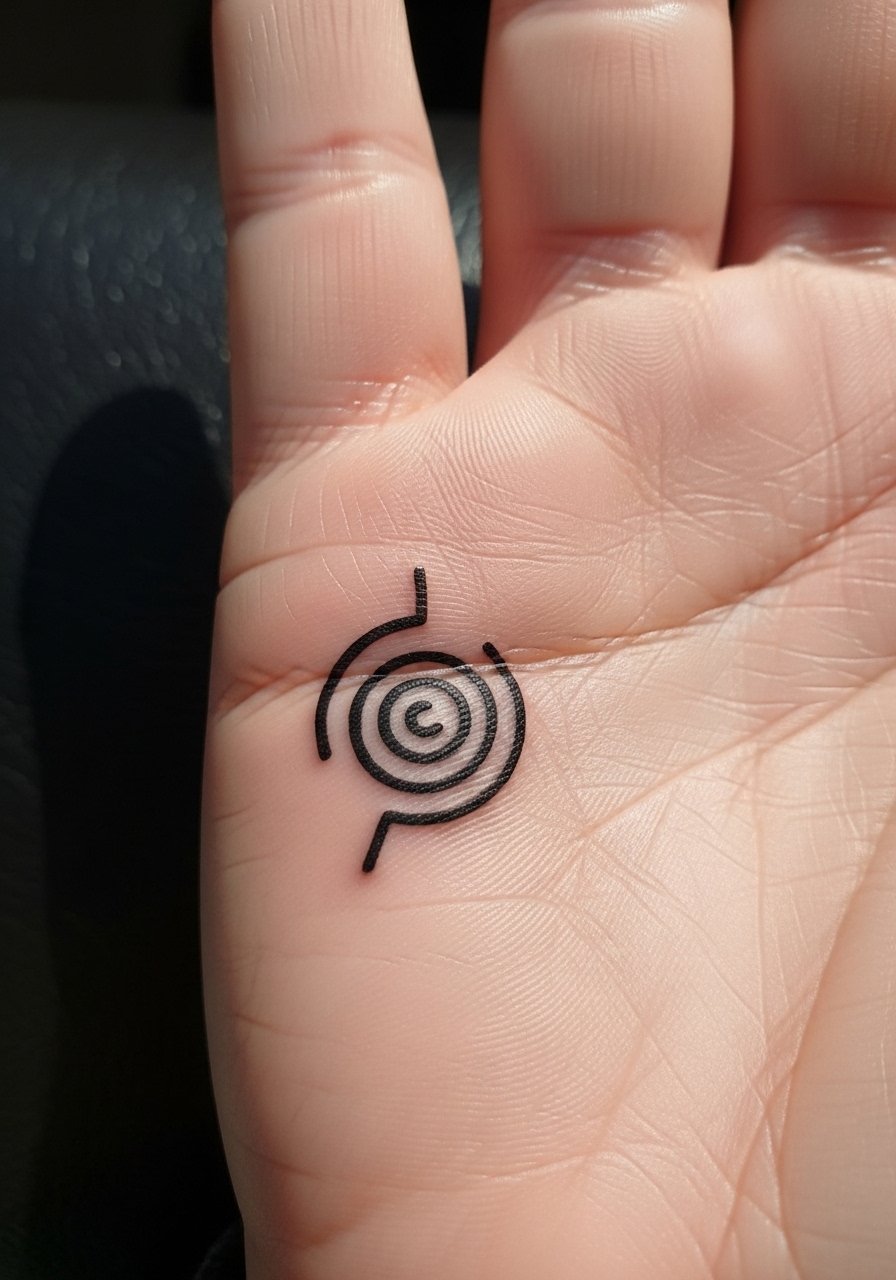 23. Abstract Spiral Tattoo on Palm Edge