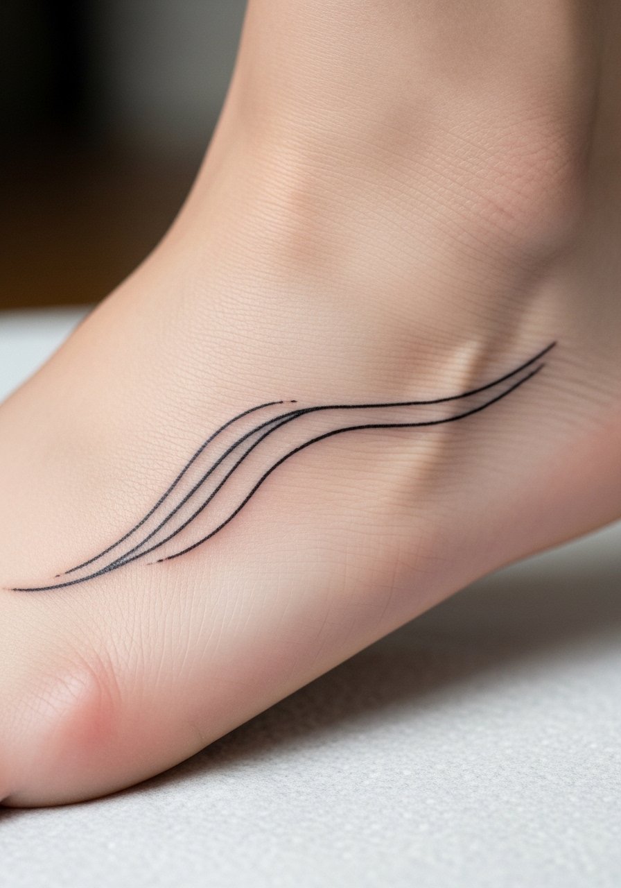 Foot arch tattoos hurt and fade rapidly from shoe friction. Curved fragments work if kept simple and slightly bolder. Healing can be tricky—keep footwear loose and follow aftercare. Expect to revisit for touch-ups.