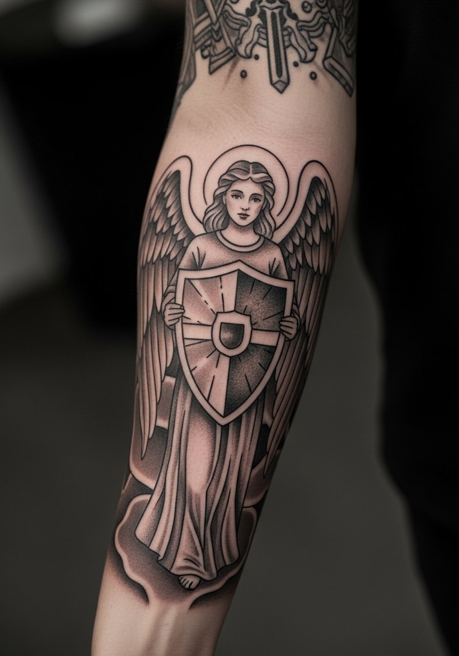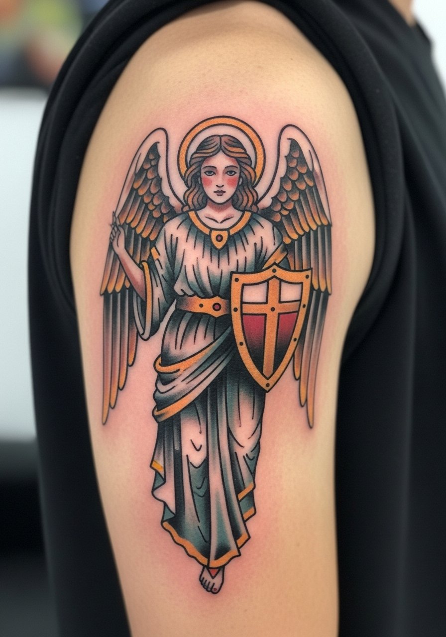 2. Traditional Angel With Shield on Upper Arm