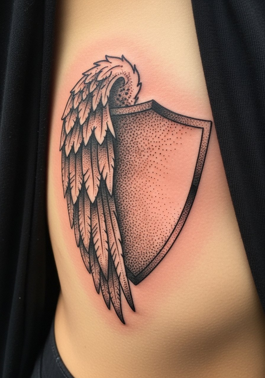 6. Dotwork Wing Shield on Ribcage