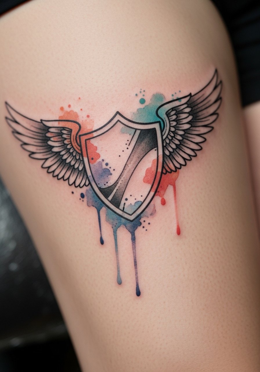 12. Watercolor Winged Shield on Thigh Outer