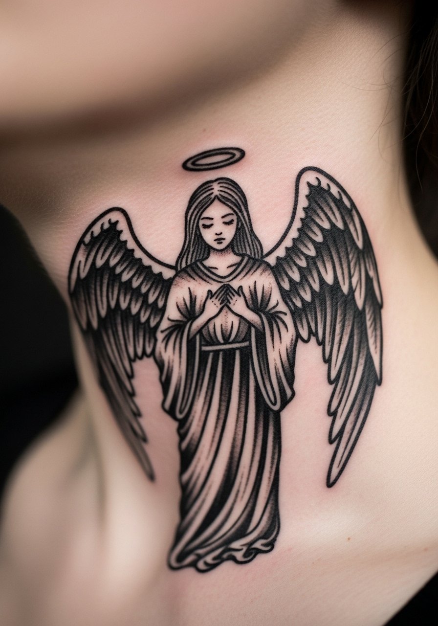 16. Gothic Black Angel on Throat Side