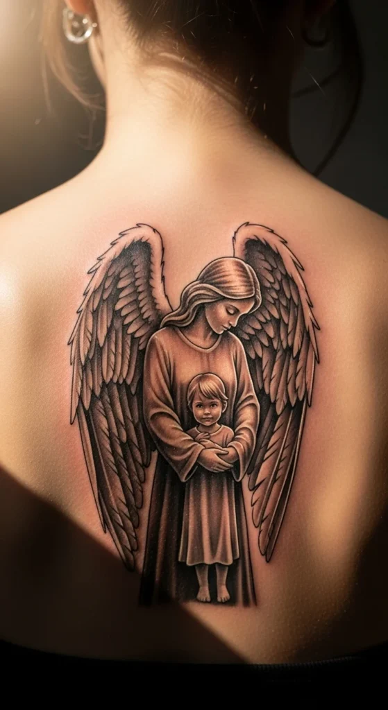 A guardian angel design feels comforting because it acts like a symbolic shield. Many people choose calm poses with open wings to suggest safety. If you prefer a simple idea, go for a half-body angel on the forearm. It heals well and stays visible when you want reassurance. For a budget-friendly approach, work with a single session outline first and add shading later. You can also test sizes using temporary tattoos at home before committing. Keep the wings soft and airy so the design stays clear over time. A light robe texture adds emotion without making the art too busy. This style works for people who want a quiet reminder of protection during everyday life.
