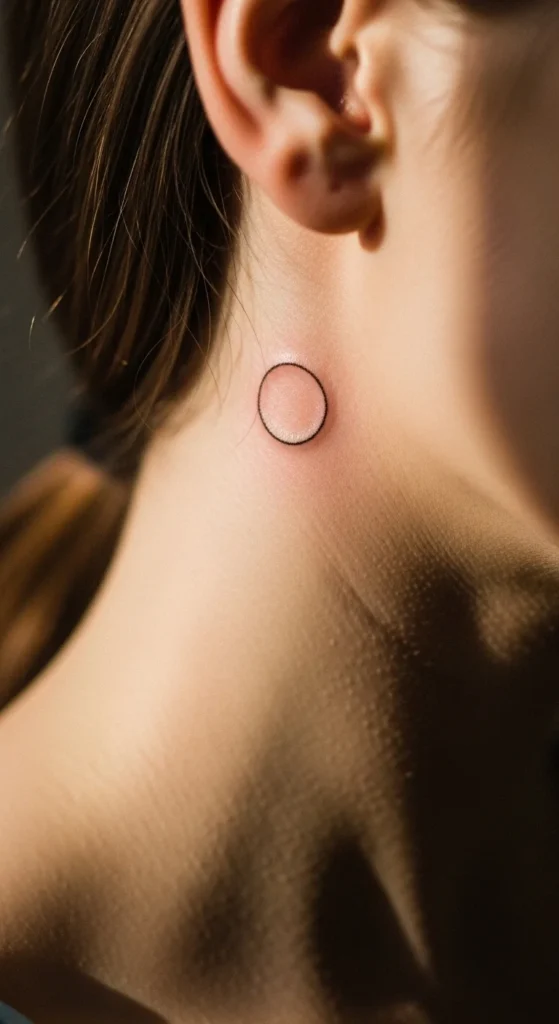 A tiny halo on the neck feels meaningful without being loud. It stays soft and symbolic. Minimal lines keep the session short and affordable. Try placing a small ring on your neck using a makeup brush to test location. If you want a touch more meaning, add a tiny star beside it. This design is great if you want a quick, gentle reminder of guidance.