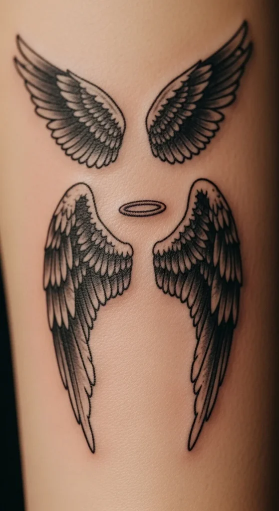 A cracked halo tattoo can represent healing, forgiveness, or a personal turning point. It’s simple enough to stay affordable but meaningful enough to tell a story. Small placements like the collarbone or inner arm work nicely. Keep the break in the halo clean and minimal. You can skip wings to keep the design light. Test halo shapes with a circular object at home. Many choose this style when they want something symbolic without a lot of detail.