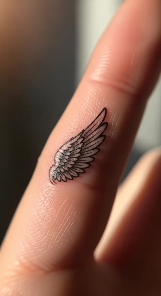 Tiny finger wings stay subtle and meaningful. They’re quick to apply and budget-friendly. Thin lines help them heal cleanly. For testing, draw a small shape with a gel pen to check placement. Keep the wing minimal so it doesn’t blur over time. This style is ideal if you prefer something symbolic but discreet.