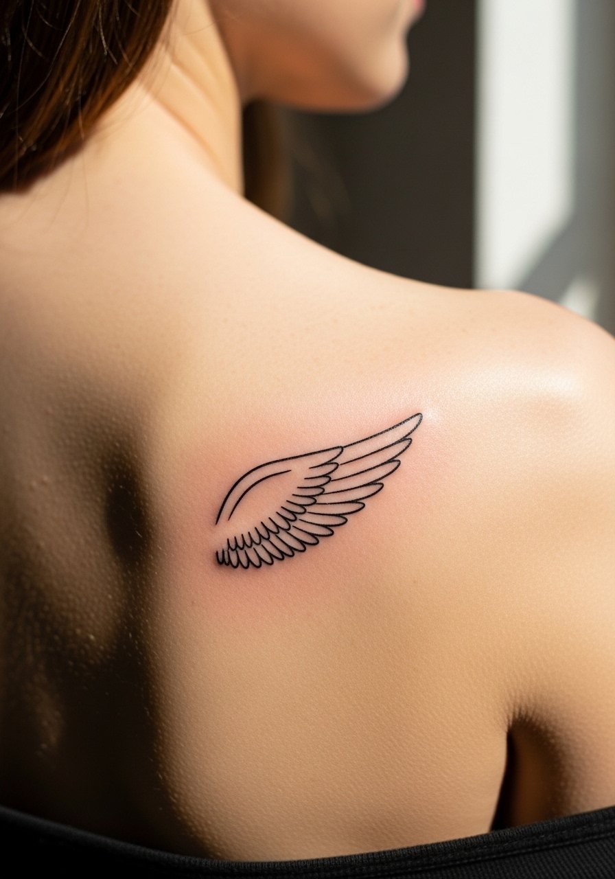 4. Fine line wing outline on the shoulder blade