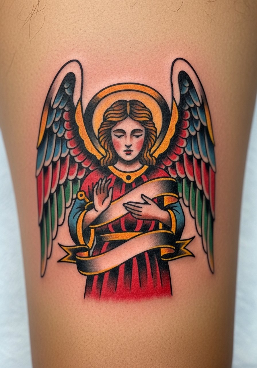 6. Old school angel with banner on the chest