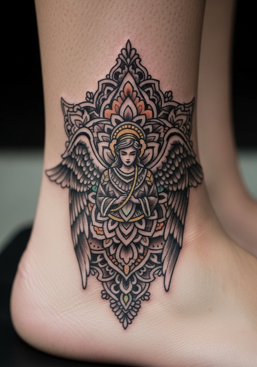 8. Ornamental angel mandala wrapping the ankle