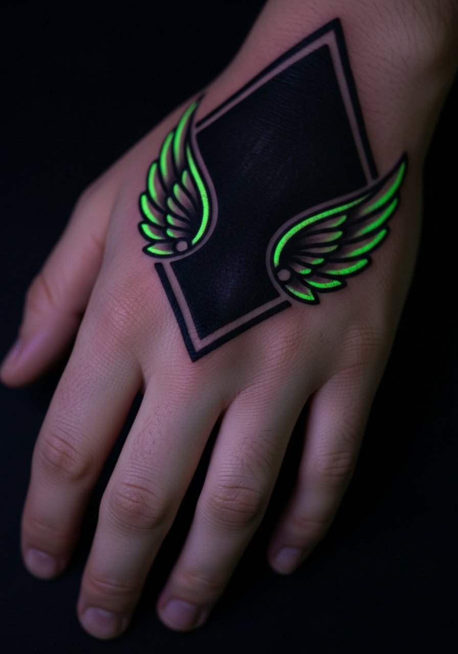 14. UV-reactive wing accents for nightlife on the hand