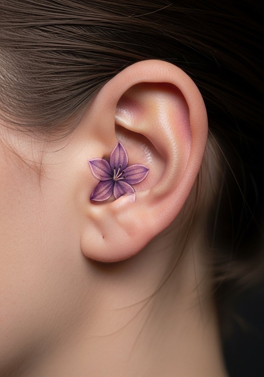 Violets read as personal and quiet. Micro-realism lets you capture the flower’s texture behind the ear, a spot that's easy to hide. Pain is minimal but the area is bony and sensitive at first. Heals quickly but requires careful moisturizing because it's often exposed to hair and sweat. Micro details can blur if the lines are too tight—ask for tiny shaded work rather than needle-fine single lines. This placement is great for people who want a private symbol of identity or memory.