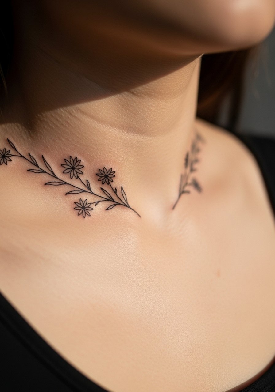9. Fine Line Aster on Collarbone