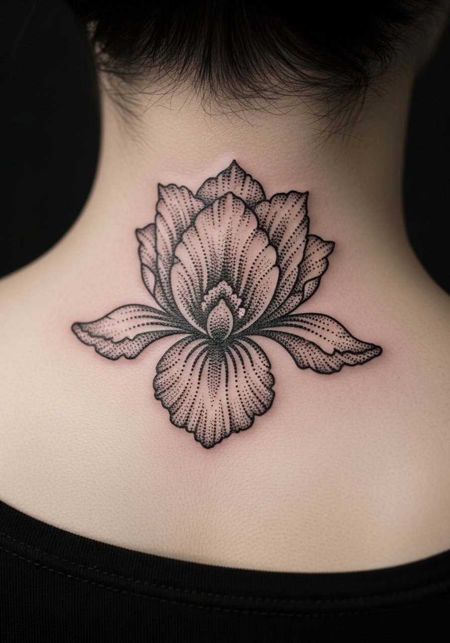 The nape is a striking spot for a dotwork iris. It’s sensitive and movement-heavy; expect higher discomfort. Dotwork ages gracefully if done densely enough. Keep hair away from the area while healing to prevent scabbing issues. Artists skilled in stippling can create delicate gradients that hold up; sloppy dotwork becomes patchy, so pick someone with examples.