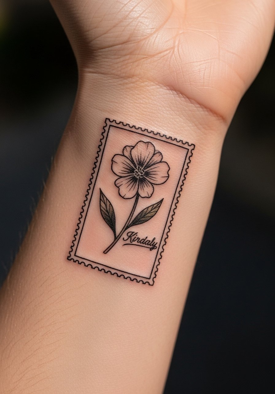 I love the seed packet motif—it's literal and charming without being cheesy. The wrist suits this like a tiny label. Script needs to be bold enough to remain legible; tiny cursive often disappears. Healing is straightforward; protect from wrist flexion and straps. Ask your artist for a mockup scaled to your wrist to ensure readability.