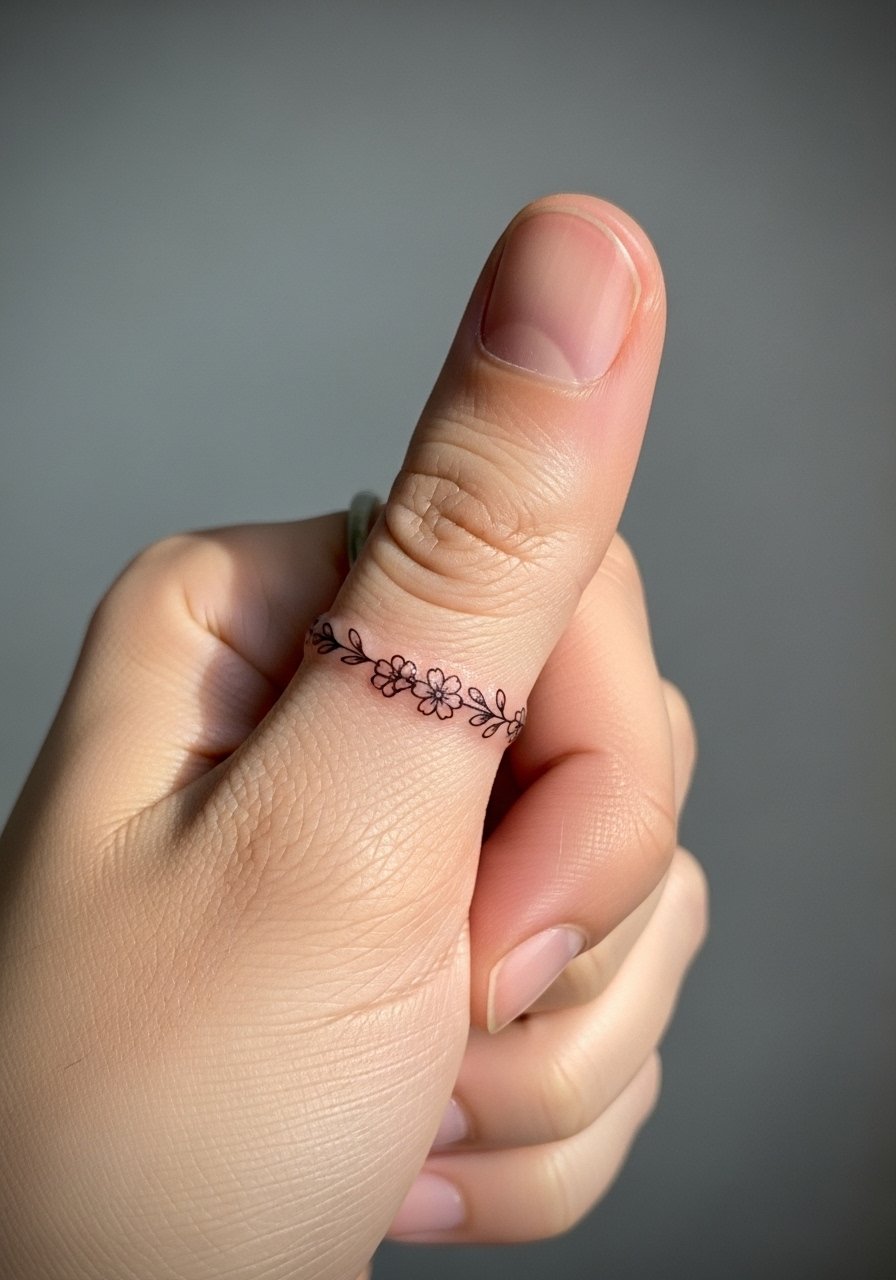 Thumb and hand placements are highly visible and prone to fade. If you want a ring of flowers, accept that touch-ups are likely. Pain is high due to thin skin. Choose bold, simple shapes and thicker lines. Keep hand use gentle while healing to protect ink.