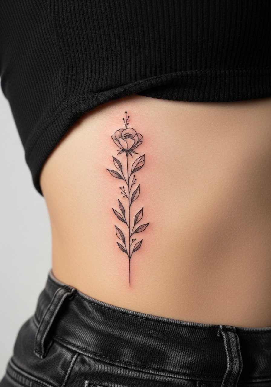 29. Birth Flower Bookmark Tattoo on Side Rib