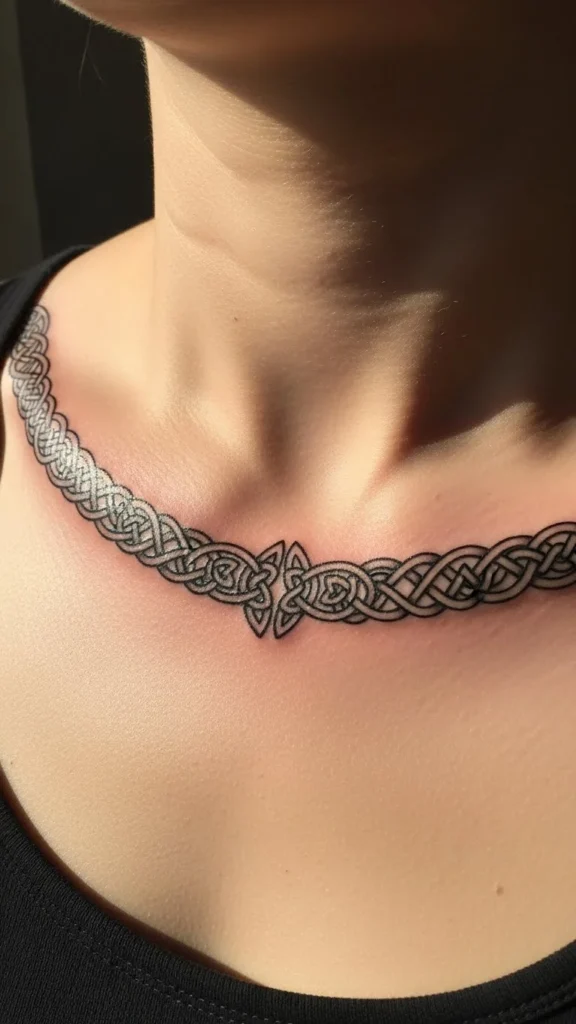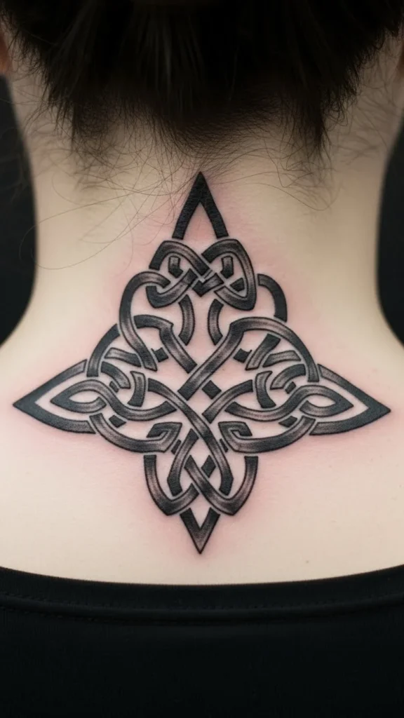 Placed at the base of the neck, knot symbols feel discreet yet intentional. Smaller designs heal faster.