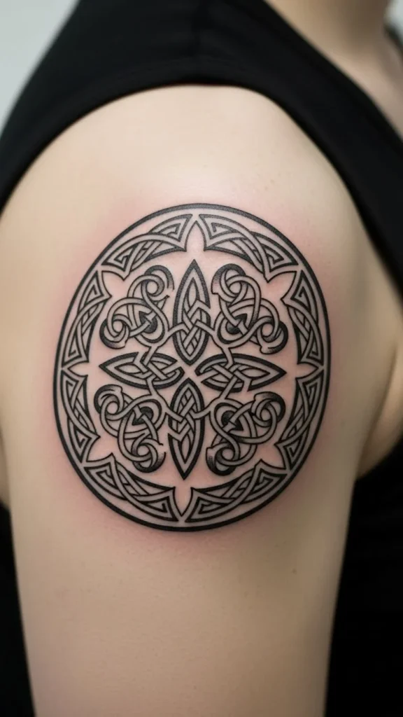 Circular knot designs sit naturally on the shoulder. The rounded shape matches the body and feels complete from every angle. This makes it a strong option for people who want balance without large coverage.
