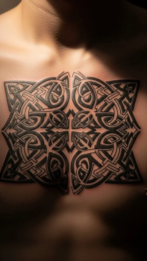 A chest knot medallion feels grounded and symmetrical. It often reflects balance and inner focus. Center placement matters here more than size.