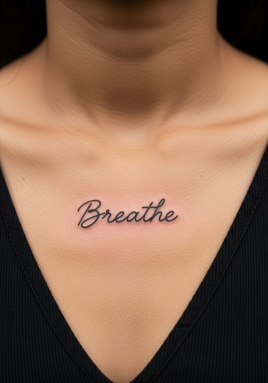 Fair warning, the sternum area can be more sensitive than the upper chest, so plan for a slightly longer session. When you book, bring the exact word in the font you want and ask the artist to stencil it at full size so you can confirm placement. Artists split on ultra-fine script on sternum. One camp says the skin stretch and movement make micro script blur fast. The other camp says with the right depth and spacing it can hold. Say which side of that debate your artist falls on before you book. A common mistake is shrinking the lettering too much. Slightly larger, properly spaced script lasts longer and needs fewer touch-ups.