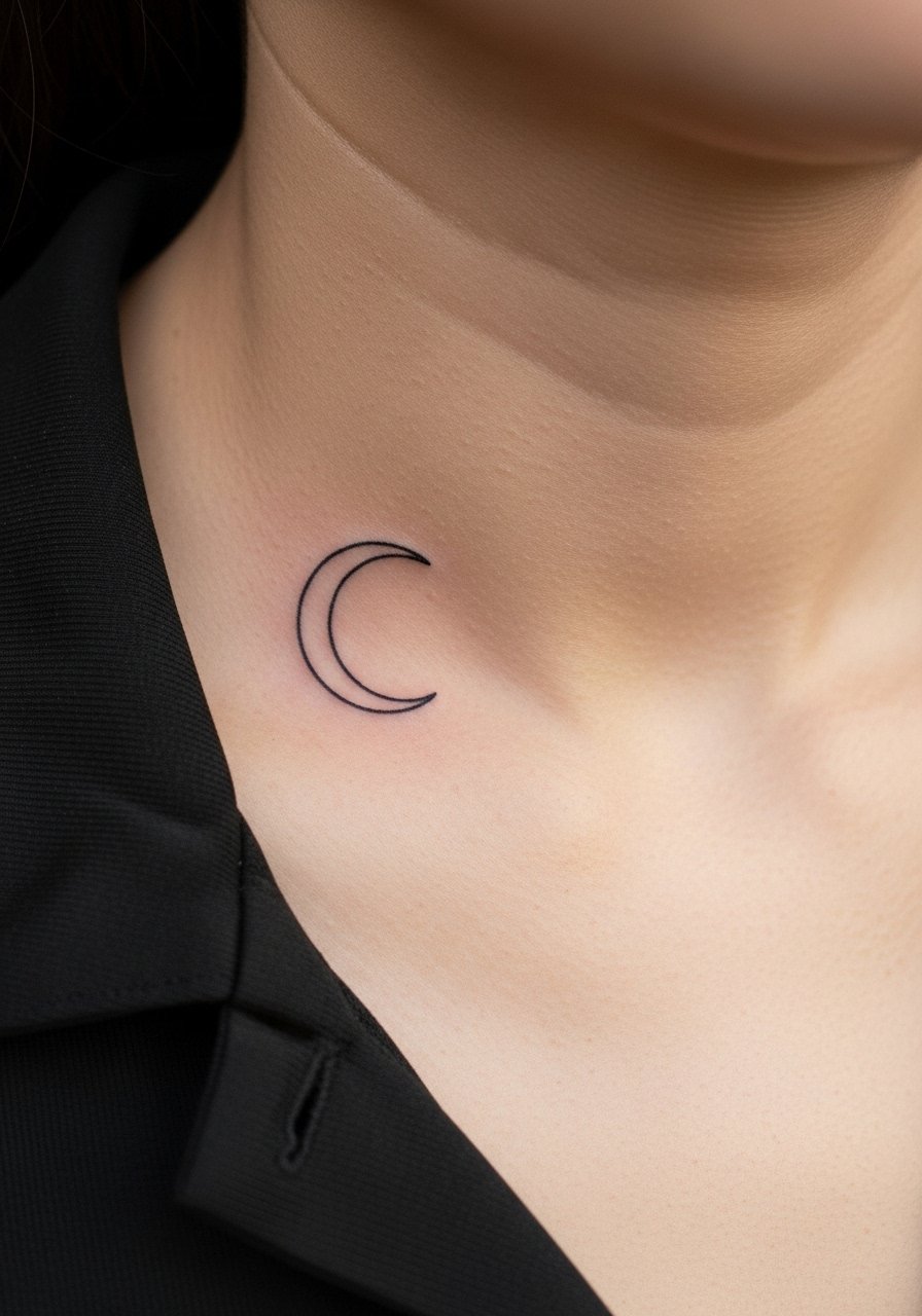There is a visual impact to tiny celestial pieces that makes them feel both personal and effortless. For this spot expect low to moderate pain and a short session. Ask your artist for a slightly thicker outer curve so the crescent keeps a clean silhouette as it heals. A common misstep is asking for near-hairline strokes that disappear or blur. On the collarbone the skin moves a lot with breathing and clothing, so thicker linework helps longevity. If you plan to wear necklaces, think about placement so the jewelry does not rub during early healing.
