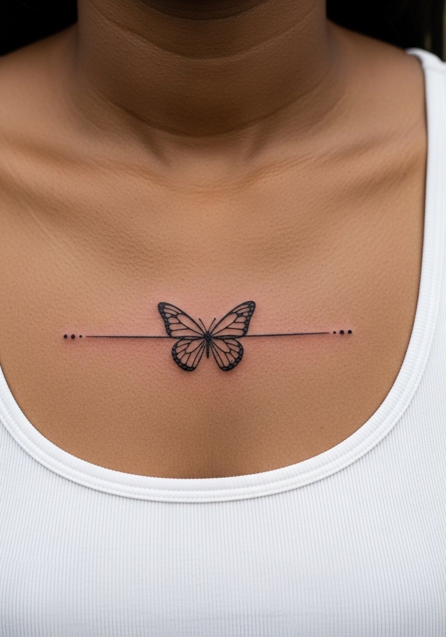 There is more sensation and movement in the cleavage area than on flat parts of the chest, so expect moderate pain and a slightly longer session. When you consult, specify the scale and ask for a tested reduction in detail so wings do not merge as they settle. A mistake beginners make is packing too much internal detail into a tiny butterfly. This leads to muddiness after a year. For anyone concerned about workplace perceptions, note that cleavage pieces are more visible with certain necklines. If you plan to wear low necklines often, choose shallow placement so it sits comfortably under clothing.