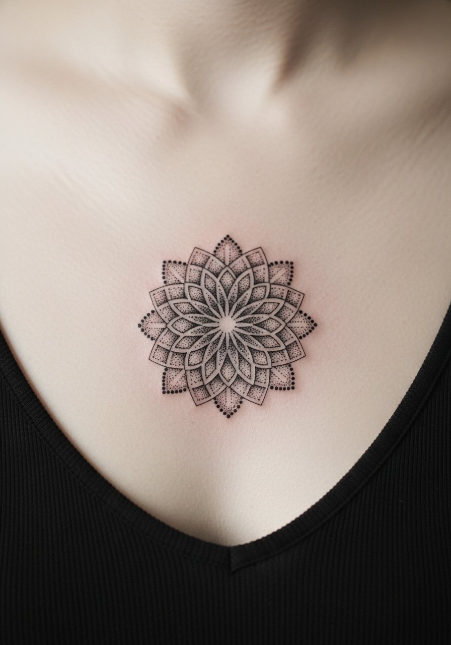 A mandala reads clean on chest when scaled correctly. Pain is moderate where the bone sits close. Bring clear references that show the exact spacing you like and tell the artist you want dot work with room between rings. New tattooers often compress patterns too tightly and that is the fastest route to a muddy outcome. Dot-work ages differently than solid black work. Expect the outer dots to soften at year two more than the inner ones. A touch-up focused on outer rings can restore the crisp geometry without reworking the whole piece.