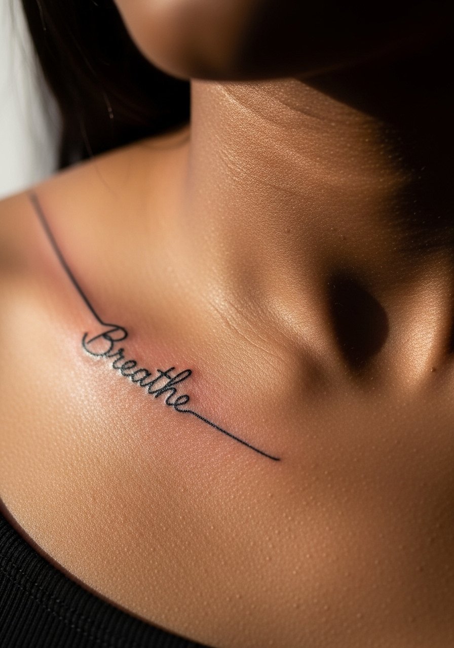3. Thin-script quote draping over the clavicle