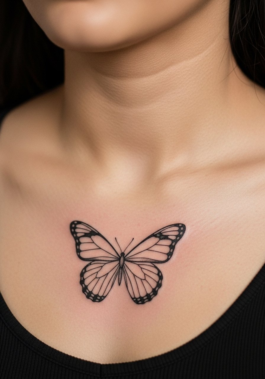 10. Fine line butterfly emerging from the shoulder shadow