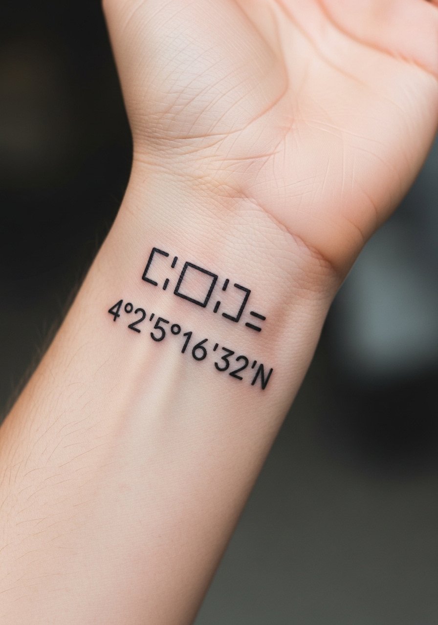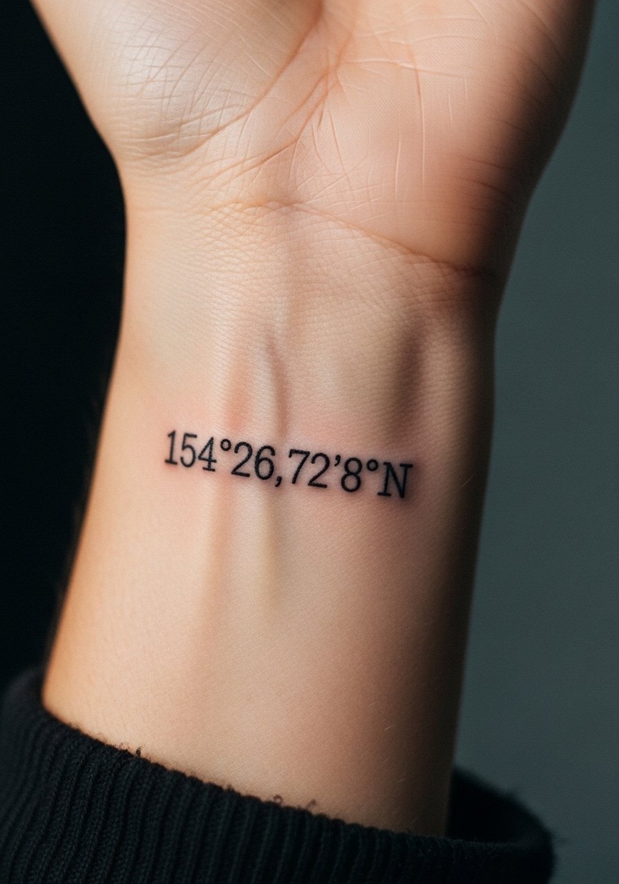 This list focuses on coordinates as meaningful, minimalist marks—fine line, micro-realism, and blackwork mainly. These work well on wrists, ribs, ankles, and behind the ear. From what I’ve seen in 2026 trends, clean numeric placements and tiny compass accents are the most timeless options.