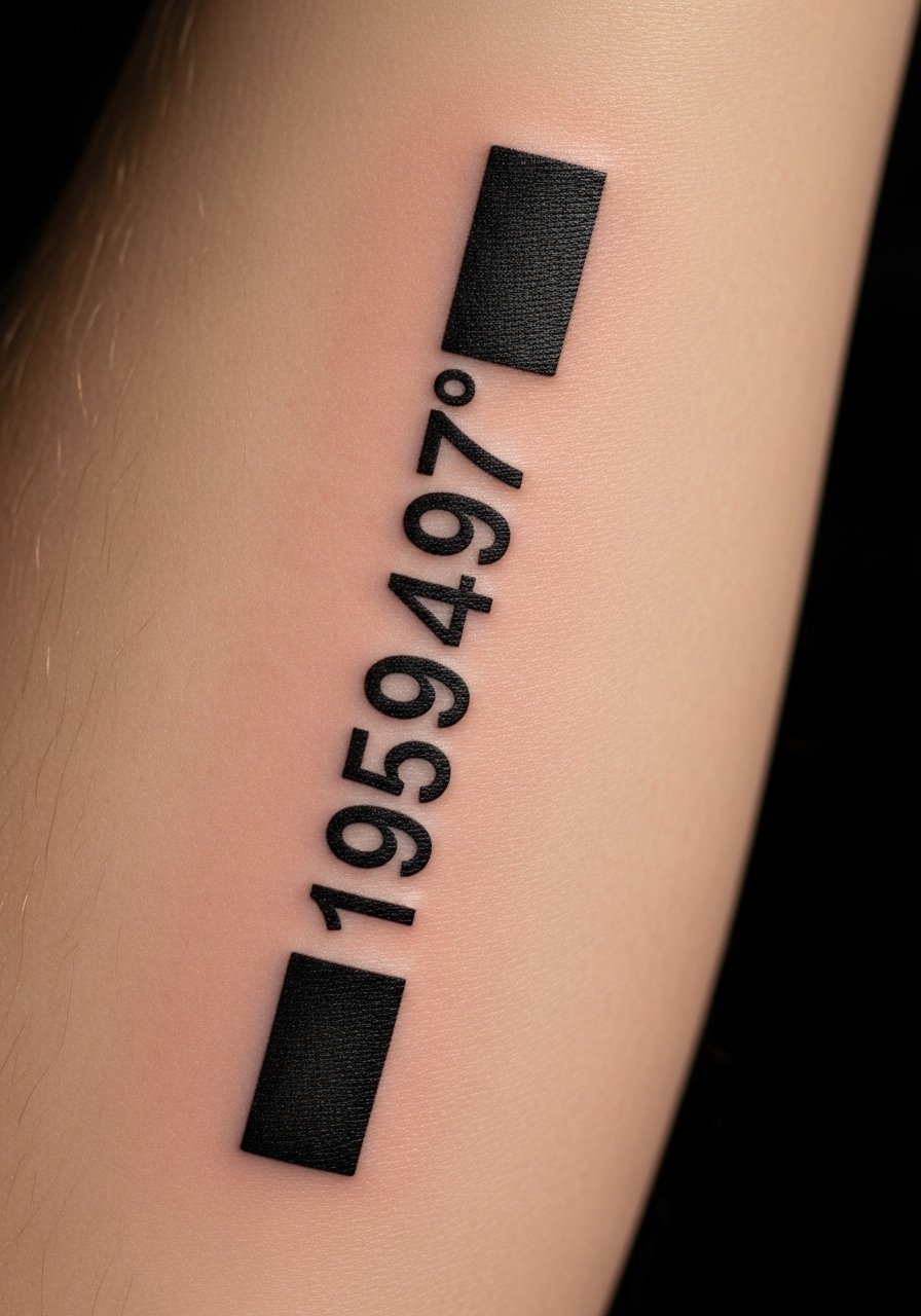 A barcode treatment turns coordinates into a modern graphic. Forearm placement is forgiving and low pain. The trick is keeping line weight balanced so the barcode read remains legible and doesn’t blur into blocks. This look ages well if lines are consistent and bold. Ask for a test stencil to ensure visual flow.