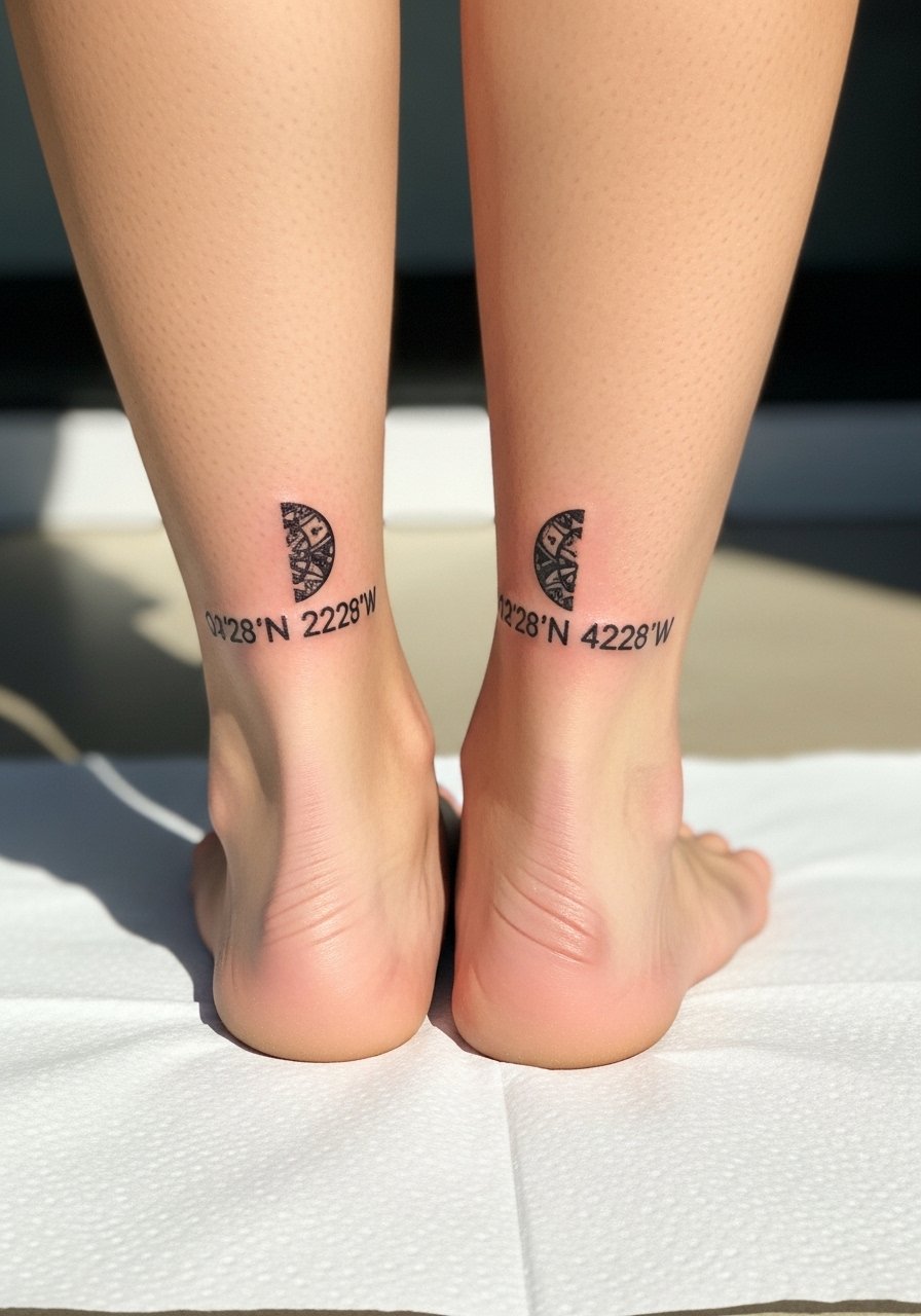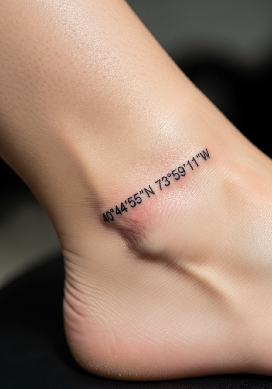 9. Coordinates Tattooed Around Ankle Bone