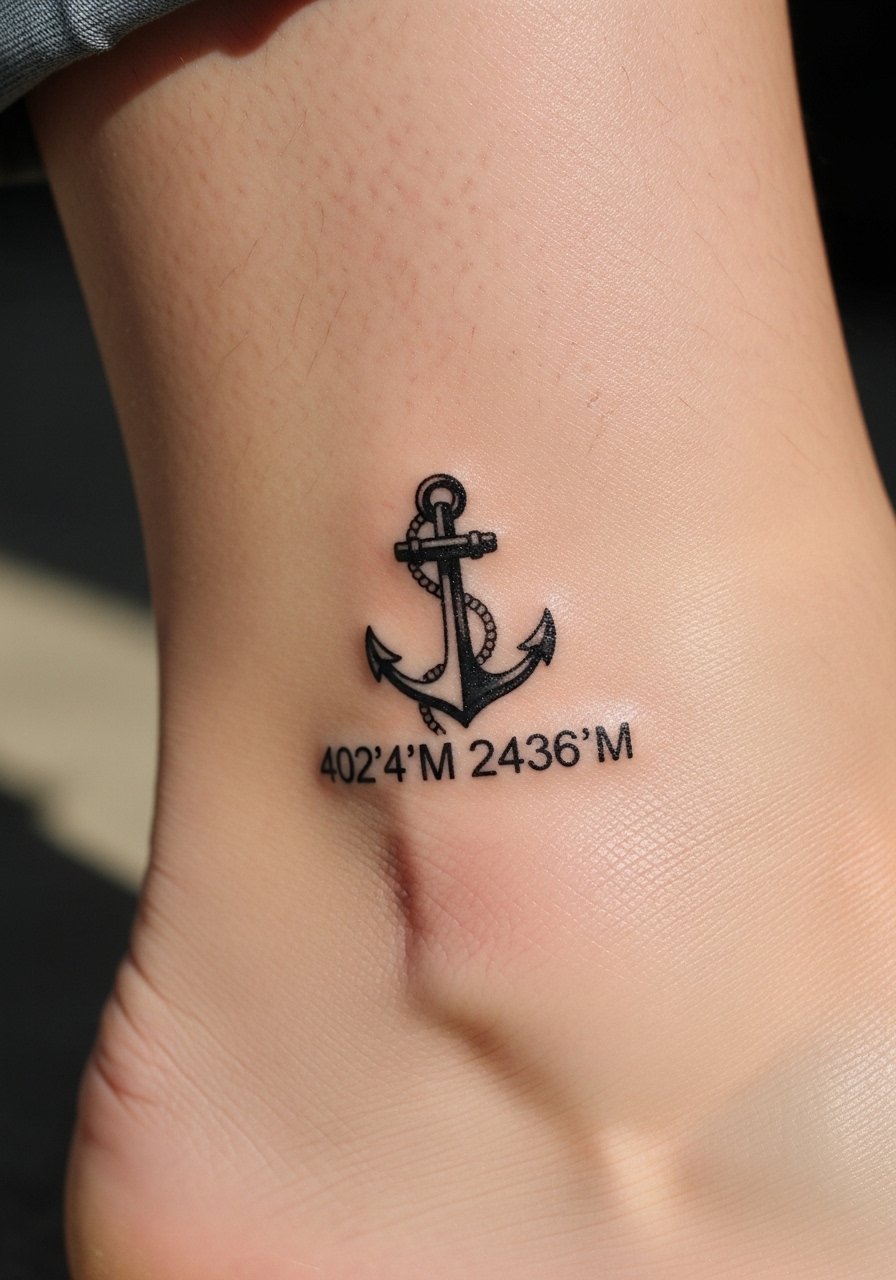 28. Coordinates Inside Small Anchor on Ankle