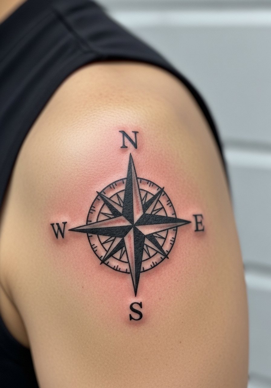 Combining a compass and cross signals direction guided by faith. Outer shoulder placement shows well in sleeveless clothing and stays relatively low-pain. I’ve seen these hybrids succeed when the compass and cross proportions are balanced so neither overwhelms. Healing is straightforward; color needs proper saturation to avoid early fading. Ask your artist about line weight to ensure the compass numbers or ticks remain legible healed.