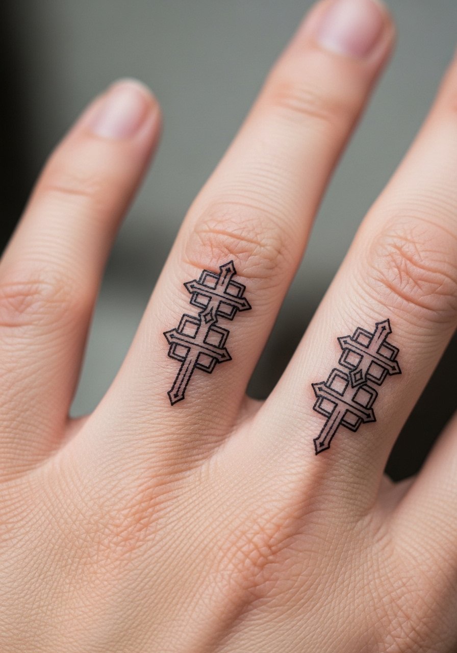 Getting small crosses on multiple fingers lets you build a collection without committing to a large piece. Fingers are tricky: they hurt, heal unevenly, and often need touch-ups. From what I’ve seen, consistency in line weight across fingers matters most—tiny thin crosses can disappear. If you’re trying this route, expect gradual work and accept that fingers often need refreshers. Many people I know planned the set over months to manage pain and healing.