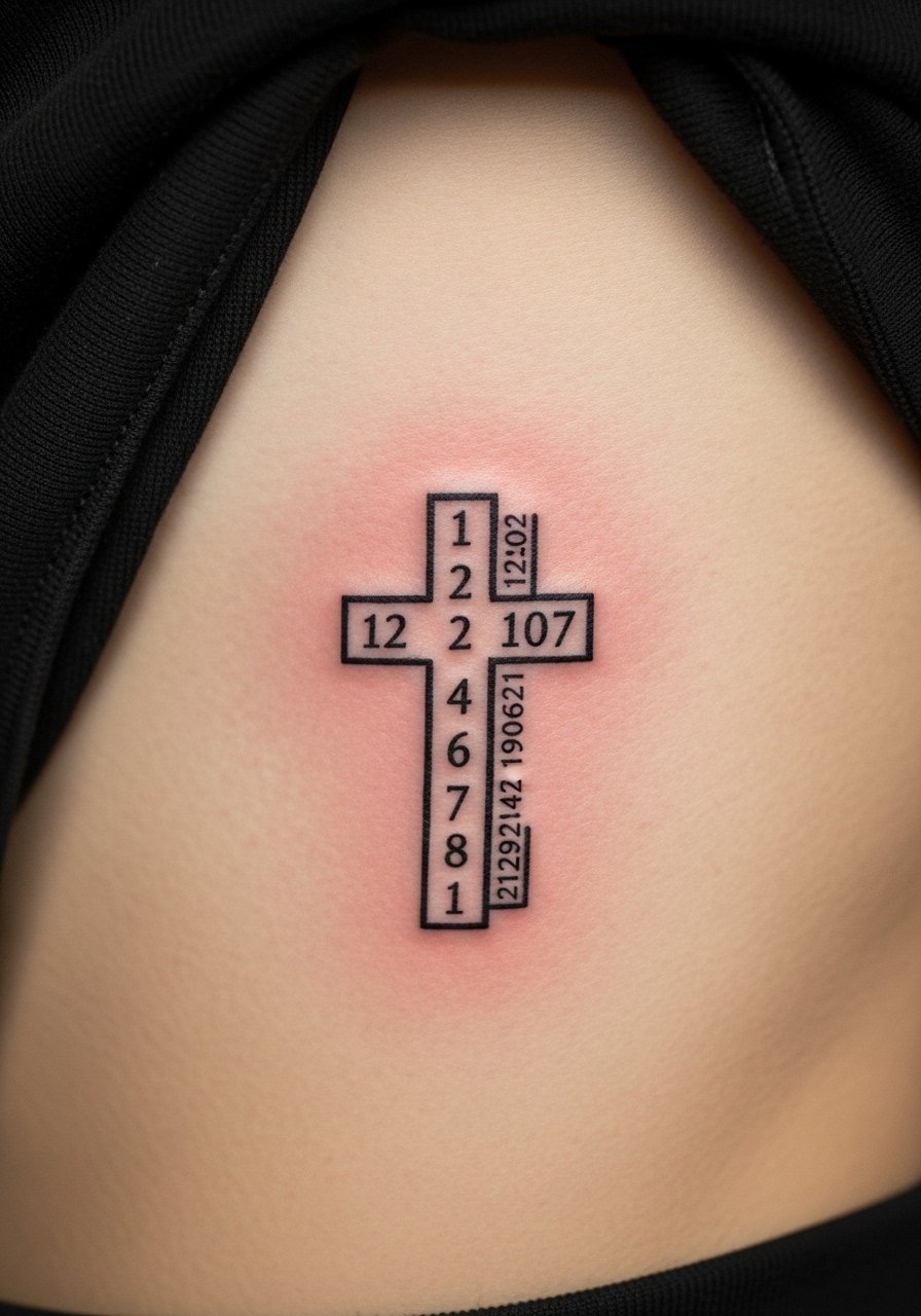 Stacked crosses with dates are a restrained memorial option that’s personal and often hidden. Side rib placement is intimate but painful; people choose it knowing the meaning outweighs the discomfort. I recommend slightly larger numerals than you’d expect so they remain legible as skin ages. Keep the crosses simple and the font clear—ornate scripts can become impossible to read after a few years without touch-ups.