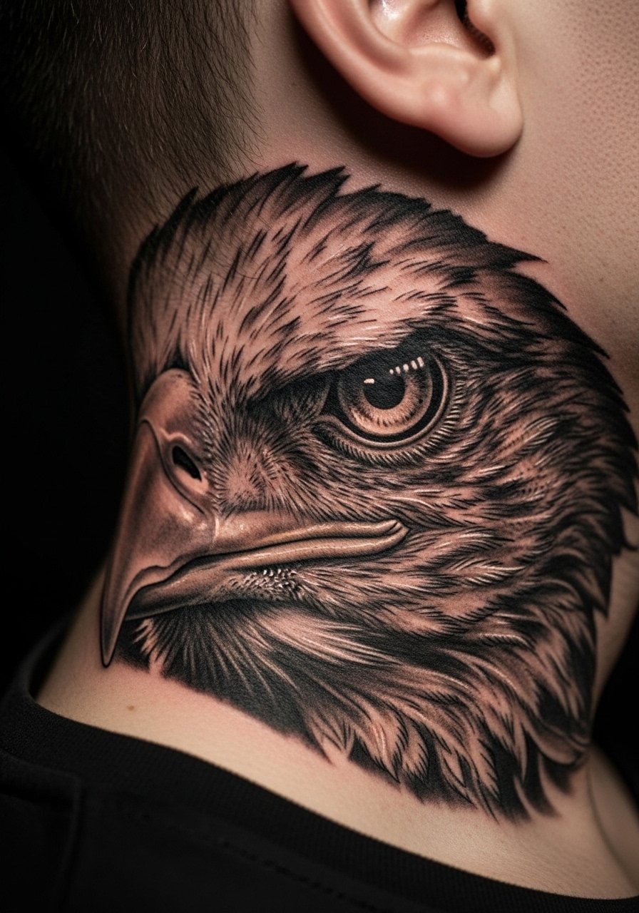 I consider neck pieces intimate and bold. Eagle eyes convey focus and intuition—perfect for a 6th-chakra vibe. Neck skin is sensitive, so expect sharp sensations during the session and careful aftercare. From artists I follow, micro-realism around the neck requires excellent shading control. Avoid tiny strokes that might blur into a smudge.