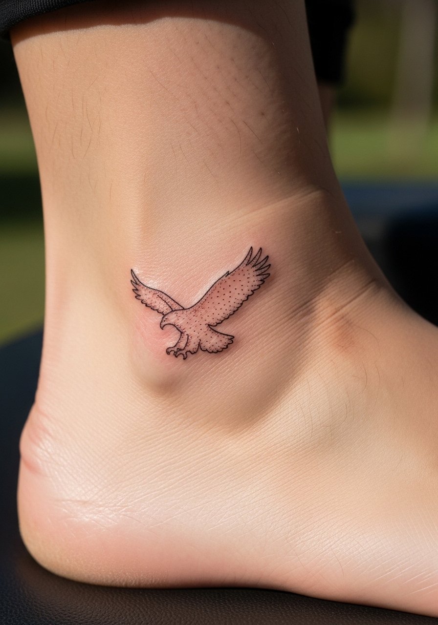 16. Handpoke-Style Minimalist Eagle on Ankle