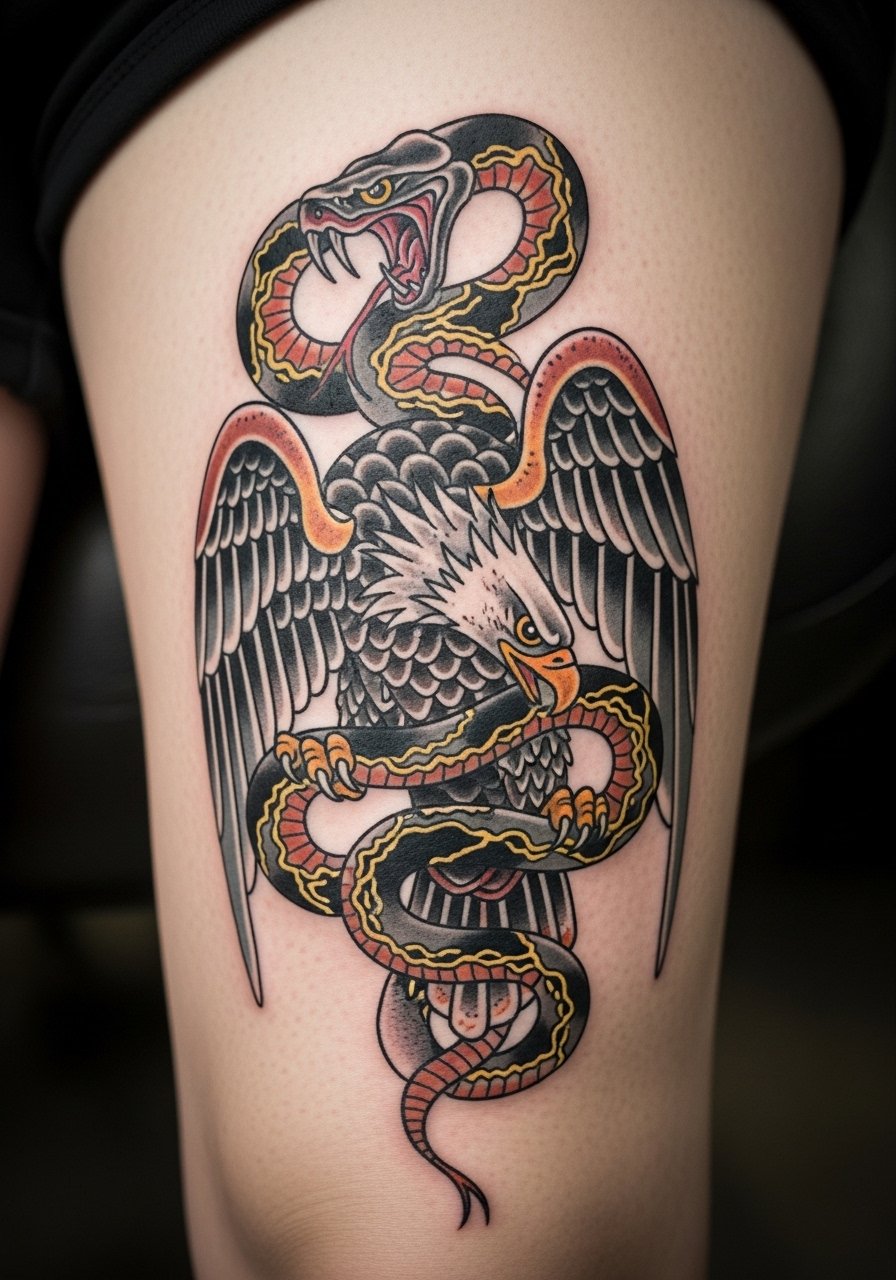 19. Eagle Clutching Snake Alchemical Hybrid on Thigh