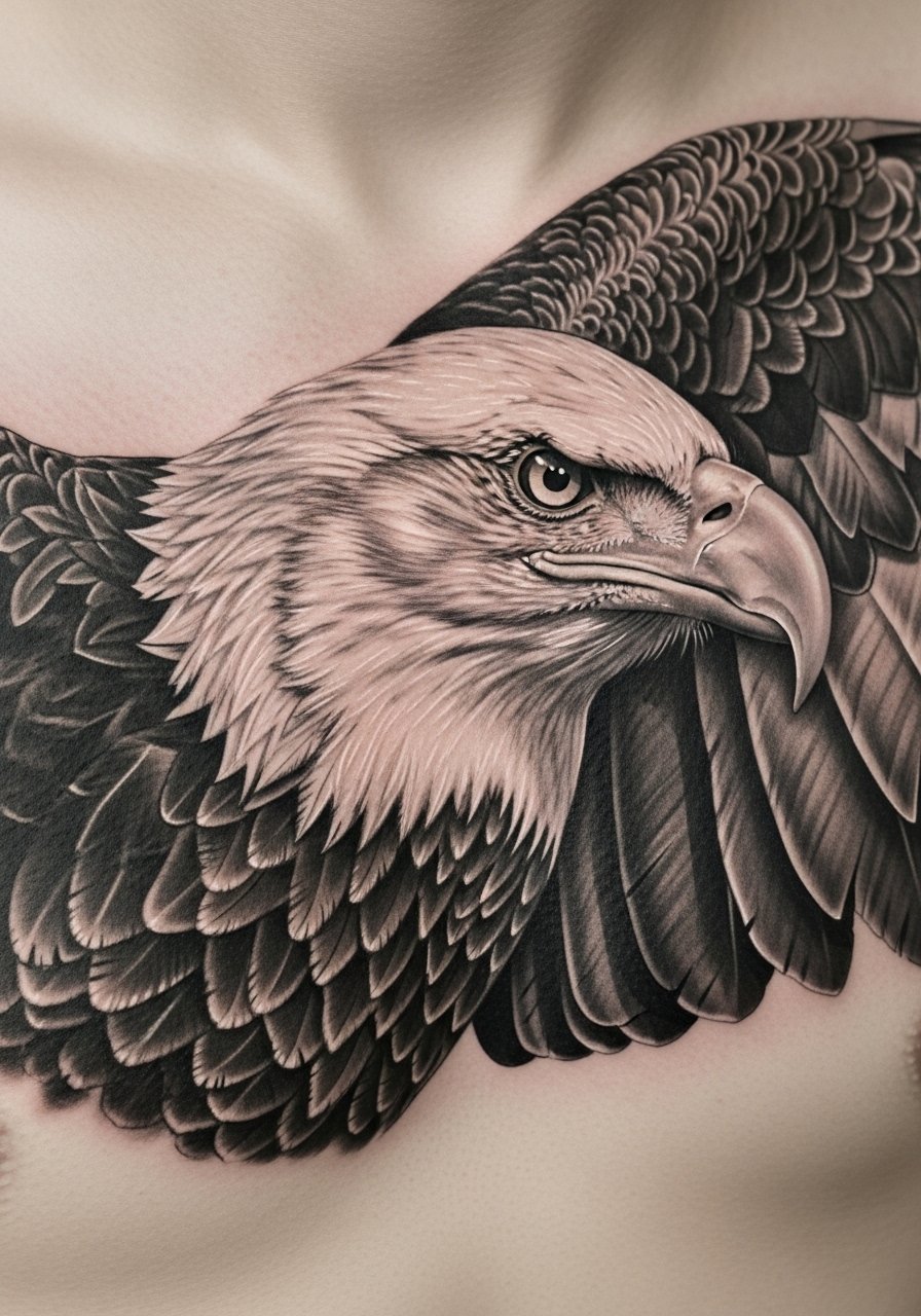 A chest portrait reads like authority and connection to nature. Chest can sting more than the arm, but the visual payoff is strong. Realistic feathers need an experienced realism artist. I always ask to see healed portfolios—feather work is the make-or-break. Keep outlines balanced; hyper-fine feather strokes often blur if overused.