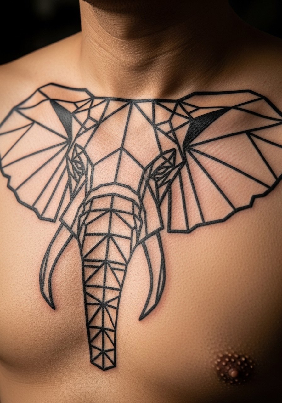 1. Geometric Elephant Chest Tattoo