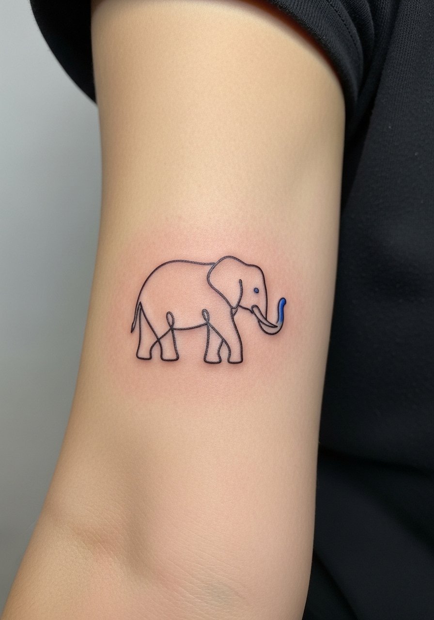 A continuous one-line elephant is perfect if you want minimalism with meaning—memory, loyalty, and quiet presence. Forearm placement lets you watch it while still hiding it under long sleeves. Pain is generally low on the fleshy forearm. From what I’ve seen, fine-line tattoos demand a precise artist because micro-blurring is the most common issue. Healed one-line pieces can lose crispness, so ask for slightly denser ink in the initial pass and plan for a touch-up if lines fade. Avoid overly decorative fills that fight the purity of the single line.