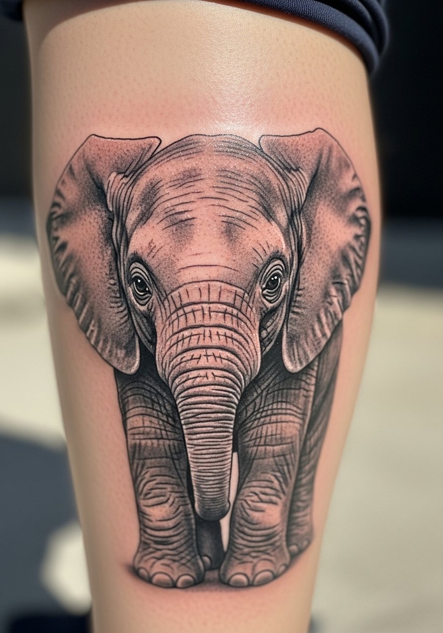 Micro-realism can be incredibly moving; a tiny baby elephant captures tenderness without a large footprint. Calf placement is forgiving and great for small portraits. The big caveat is scale—micro details often need touch-ups, and tiny shading can settle differently across skin types. I've seen artists recommend leaving slightly more space between shaded tones so gradients remain readable healed. If you go micro-realism, request healed photos of similar small-scale portraits from your artist.