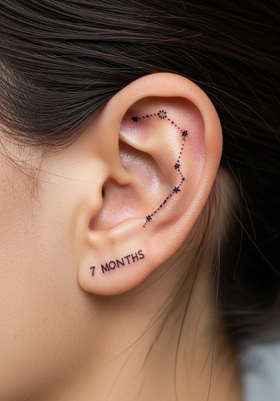I recommend this for first-timers who want a whisper of ink. The area is sensitive but quick. Sessions are under 30 minutes. Tell the artist to use single-point anchors, not long uninterrupted hairlines. A common mistake is overloading the area with too many stars. Healed, dense dots can merge. At one month the dots look sharp. At 12 months they round out and read softer. If you sleep on one side often, expect minor fading and bring that up with the artist.